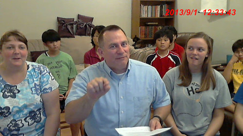 (視訊連線Skype To: Duff + Kendra Daugherty, Amanda, Haley; Matthew + Jai-Yu, Joshua, Maggie, Sashay, Uncel)