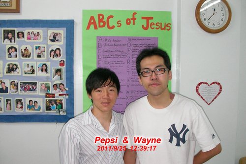 久違的 Wayne 帶來同事 Pepsi , 這名字很眼熟...對不對? 沒錯! 就是你想的那麼樣 - 跟百事可樂的名稱一樣! 他今年 22 歲, 是才來台四個月的泰籍華裔. 會彈琴(Amazing Grace, See Ye first 都會但有點不太熟), 會打籃球(乒乓也打得不錯), 還說得一口華語(還算溜). 可惜工作關係, 不能每週來教會聽福音.