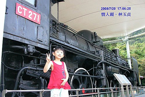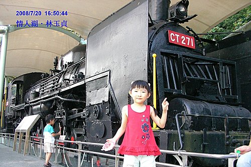 在入口處, 首先印入眼簾的就是這個龐然大物,此火車 "機關車" 頗有來頭, 聽說是劉銘傳開通全台第一條鐵道後(基隆通新竹?), 就行駛在軌道上, 至屆齡退休後, 先送台北新公園展示, 多次遷移, 最後才落腳在情人湖. 希望日後能成為情人湖的鎮湖之寶!