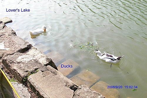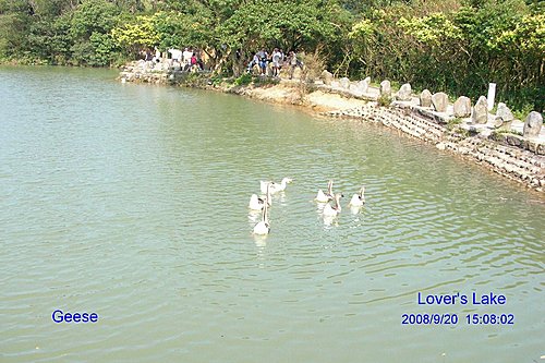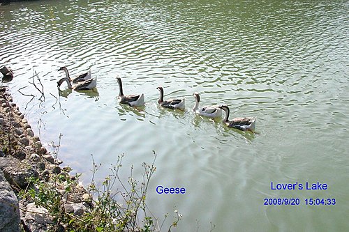 湖面鵝.鴨成群, 各自追逐覓食嘻戲. 好生逍遙自在!