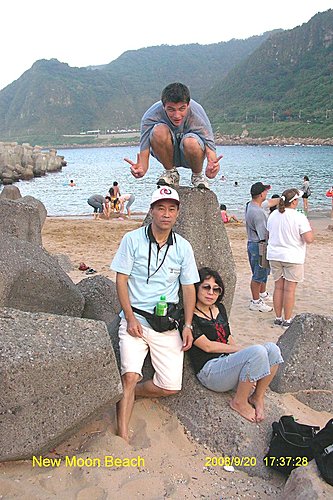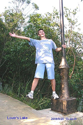活潑好動的 Joel 永遠有擺不完的 Pose , 他問說我像不像燈柱上的擺飾銅人.....