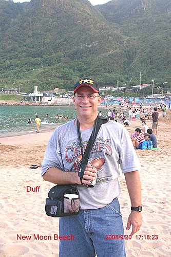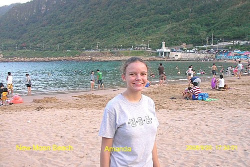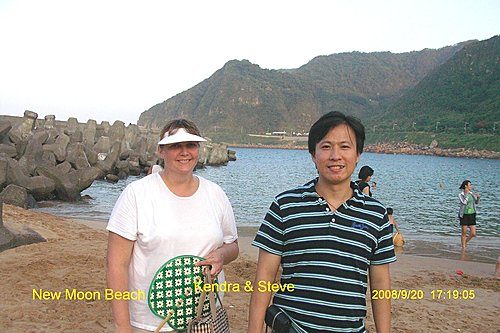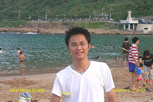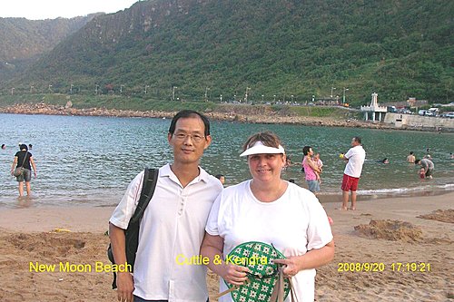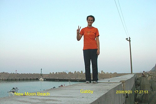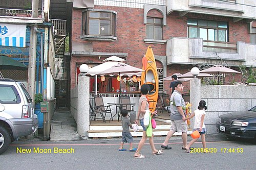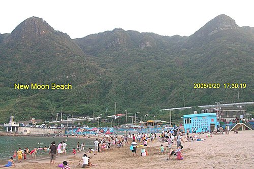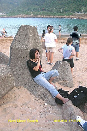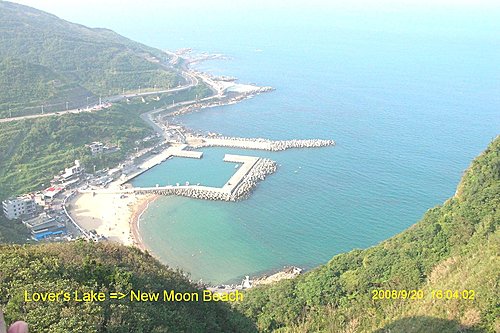 下了觀景塔樓, 你可以回湖畔入口處, 也可以選擇往下去一探風景最優美的外木山澳段的沙灘, 妳瞧她像不像一彎柳月? 所以我戲稱她是新月沙灘.