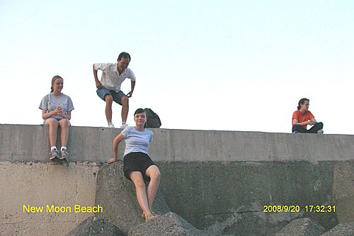 離開湖畔, 我們選擇再到海邊踩踩沙灘, 雖然時序已漸入深秋, 弄潮的人兒也還算不少.