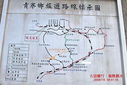 活動就從貢寮火車站開始, Steve 洽詢租用腳踏車代步, 以節省到遠望坑登山口半小時的11路時間, 只可惜店家單趟要價60元相對於約兩公里的路程, 確實是開價過高, 不只阻斷我小小的三鐵夢(單車.健行.玩水), 也希望不會扼殺當地觀光的發展.