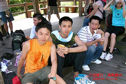 近午時分, 氣溫相當悶熱, 下坡途中一小涼亭, 就是大夥養眠補元氣的最佳休憩點.
