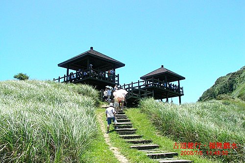 啞口的觀景樓, 可將龜山島與大里附近美景一覽無遺. 此處是前往桃源谷步道的叉路口, 也是往大里方向下坡路段的啟始點.