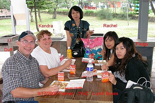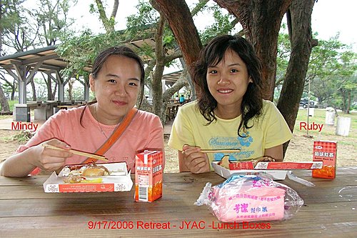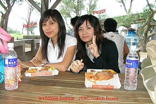 再拜颱風之賜, 我們中餐依然"佔用"昨晚的烤肉棚區, 盡享美味的盒餐(雞腿+排骨便當)