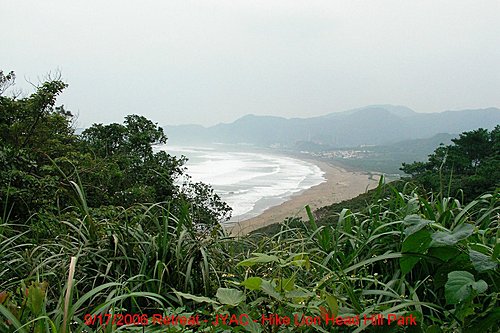 由行政中心遠眺沙灘, 因為颱風剛過, 浪濤洶湧, 禁止戲水.