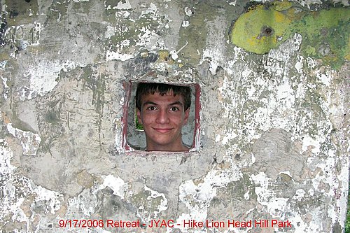 獅頭山公園原有阿兵哥駐守, 是近年來才開放的新景點, 沿路處處仍有廢棄的營房( Joel 想像當兵的英姿)