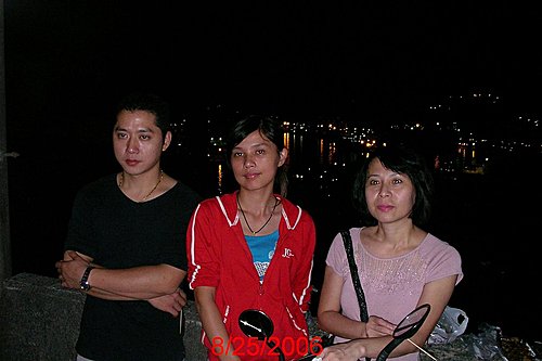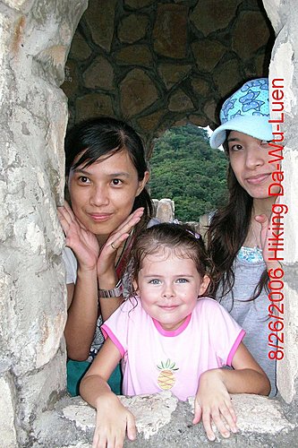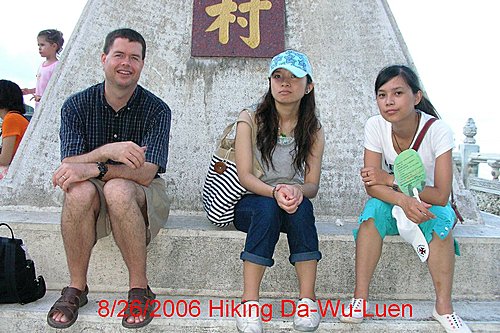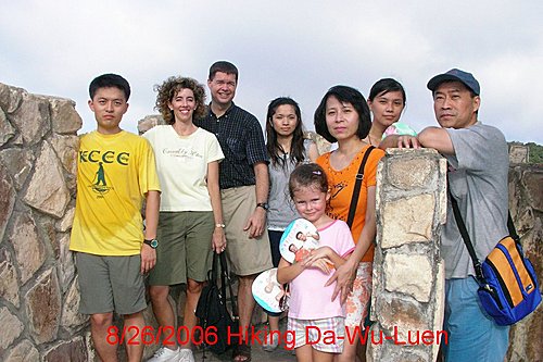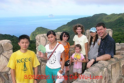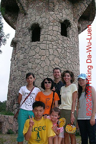一行人, 汗流浹背的登上觀景台, 趁隙趕忙擺好 Pose, 照張合照. (那一天, 天氣著實詭異, 一邊烏雲密佈, 雷聲入耳, 可幸我們這邊依然陽光普照)