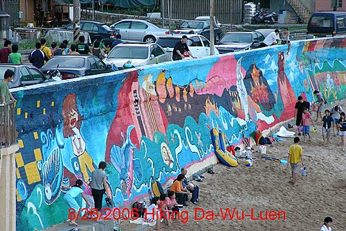 外木山的沙灘, 基隆市政府花費不貲, 用心打造一處休閒的玩水樂園, 可是為什麼沒有假日的公車可達???造成車滿為患! 另外沒有提供遊客的更衣及盥洗室, 實屬失策!